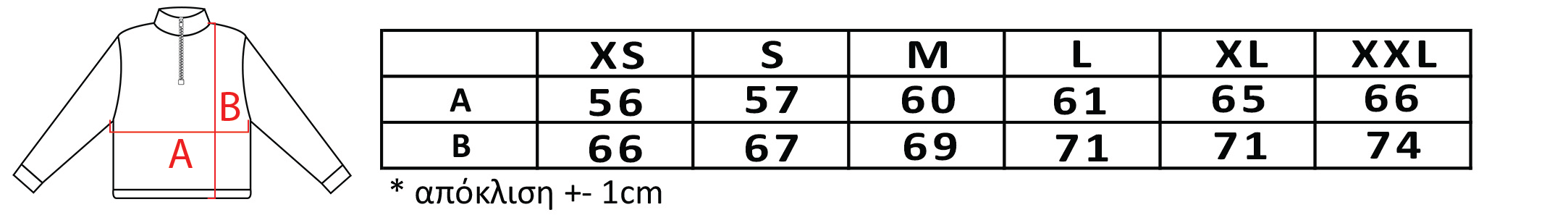 XS, S, M, L, XL, XXL