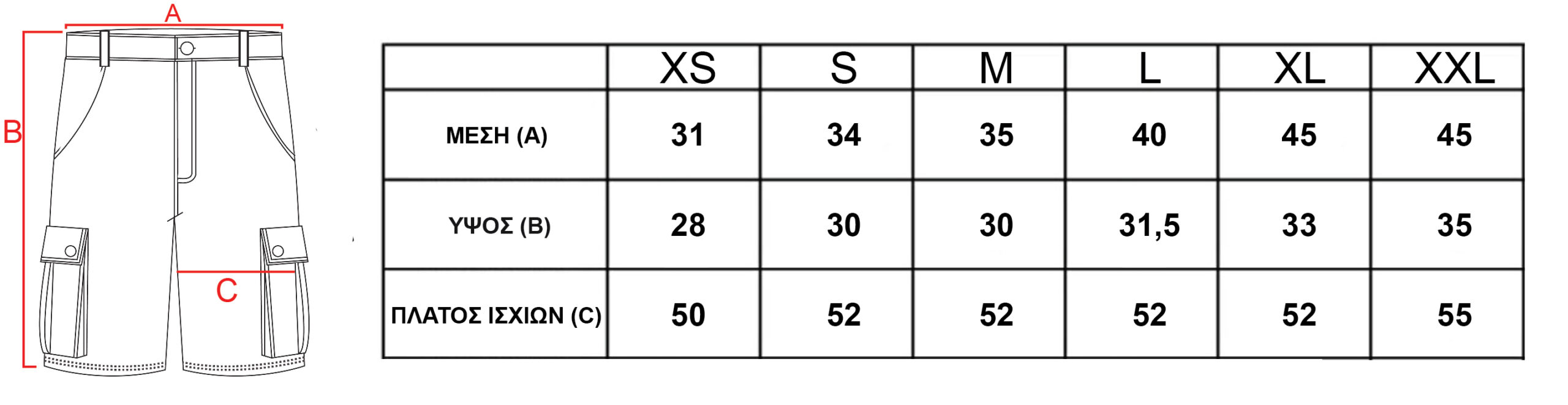 XS, S, M, L, XL, XXL